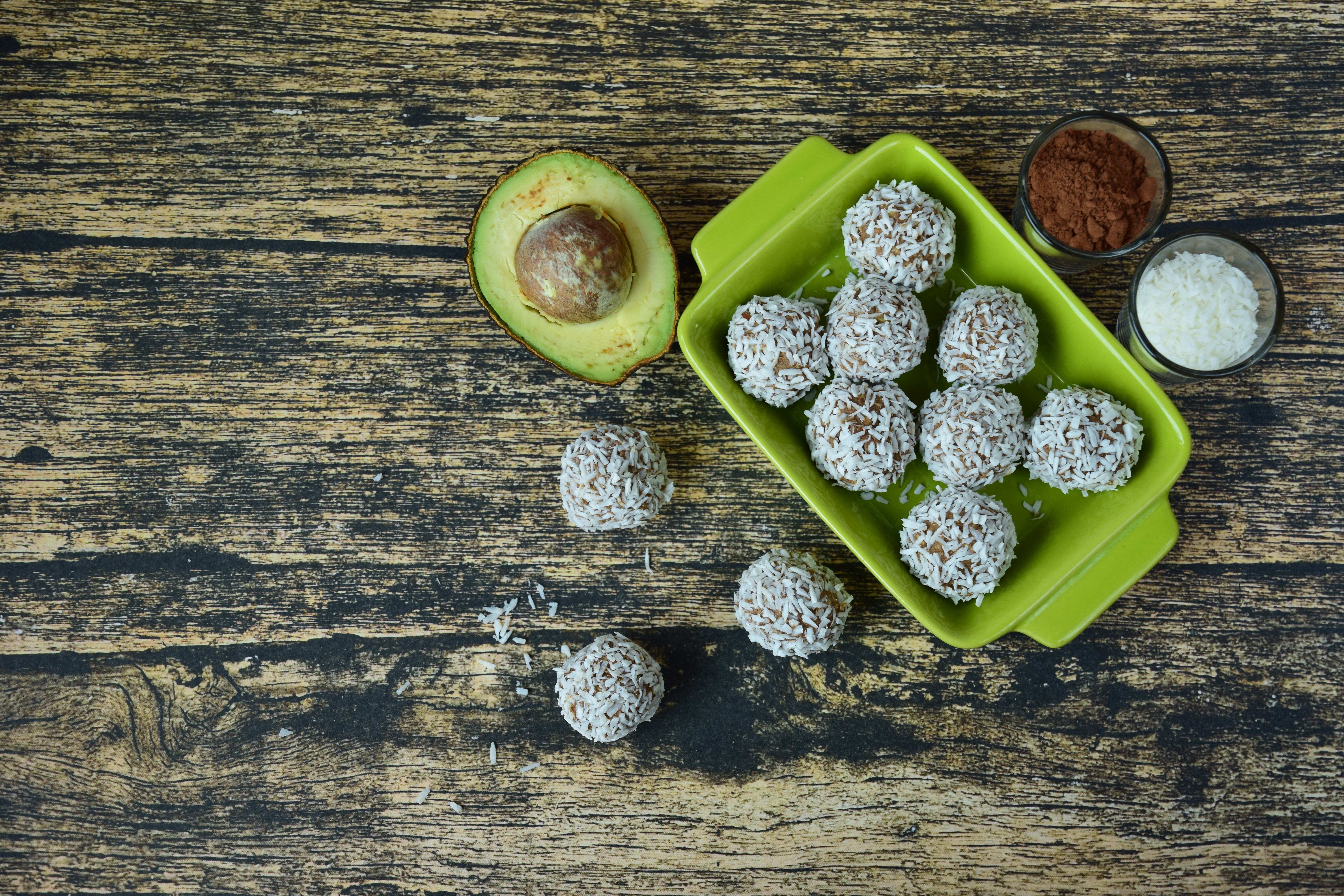 Fresh shredded coconut mingles with avocado, cardamom, and condensed milk to create these easy-to-make dessert balls. Rich in texture and light in effort, these bites are coated in finely chopped cashews to add a satisfying crunch.