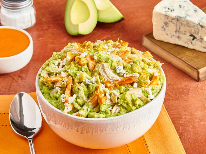 Get your guacamole ready for game day with a buffalo flare! Shredded chicken, blue cheese and buffalo sauce take this guac to a whole new flavor level! Serve with corn chips or crunchy, colorful carrot sticks.