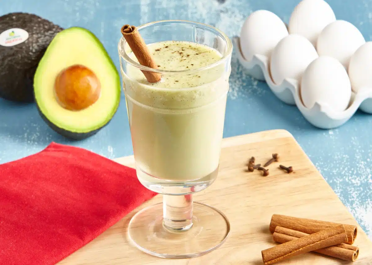 Remove from the heat. Let it cool slightly, pour into the jar of a blender along with the mashed avocado and coconut rum and puree until completely smooth. Serve warm or store in a bottle or container in the refrigerator.